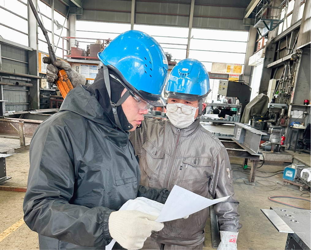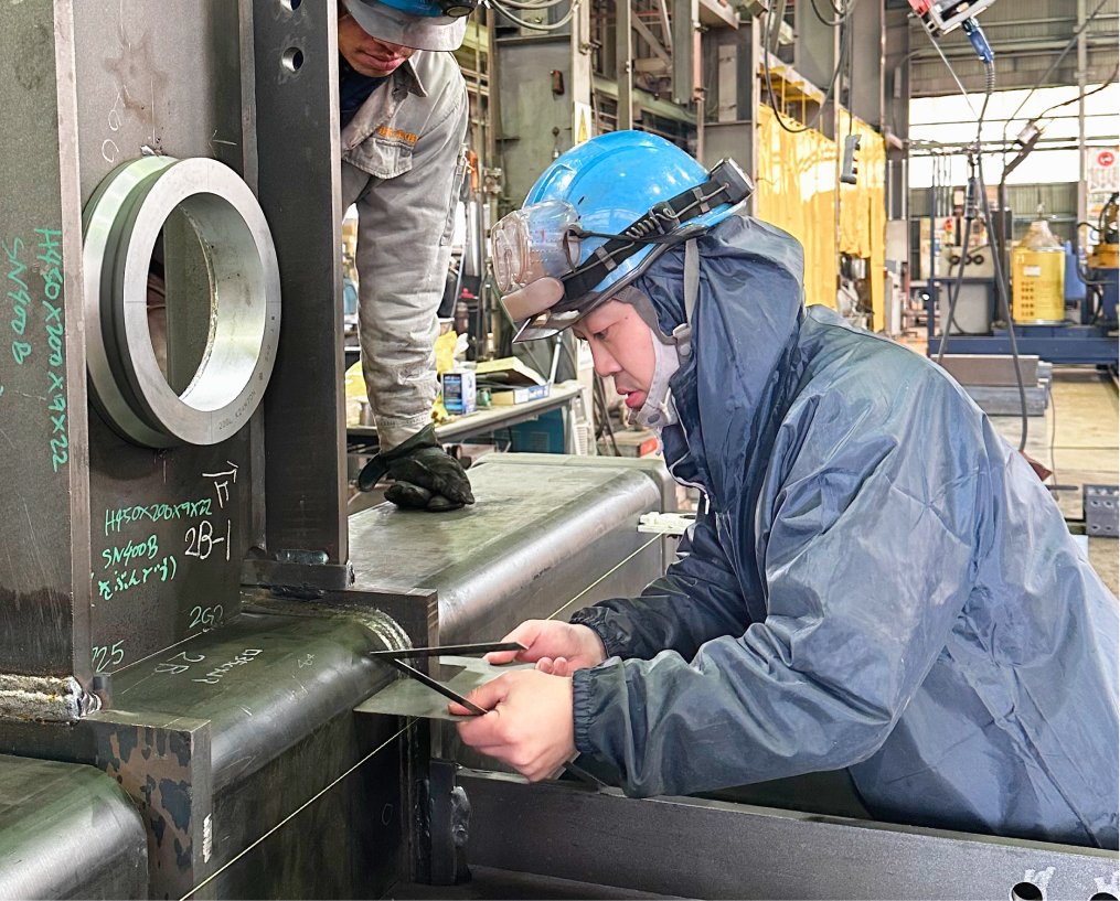 鉄骨部材の製造・搬入から建方までを一貫して手がけるとともに、グループ各社と連携し、円滑な事業運営を行っています。